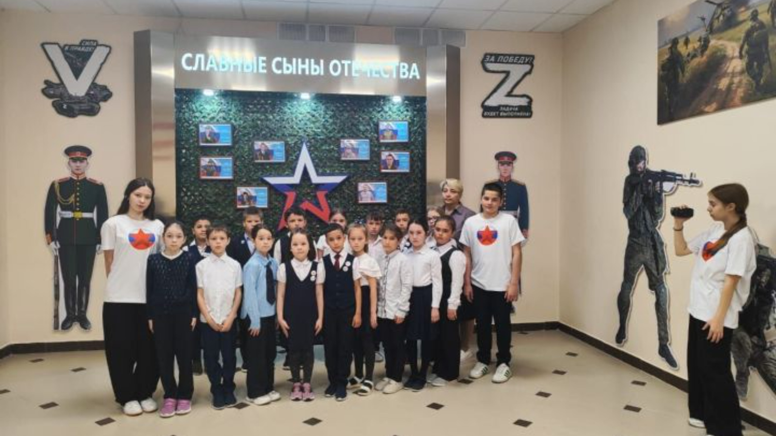 "Геройларны үстерәбез" проектында катнашучылар оештырган экскурсия барышында балаларга СВО зонасында илне саклаучы солдатлар турында сөйләделәр. Укучылар геройлар турында фотосурәтләр һәм видеоматериалларны үз эченә алган экспозиция белән таныштылар һәм күп кенә яңа мәгълүмат алдылар.