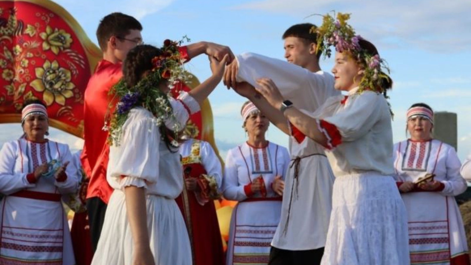 Кунаклар бик теләп венок үрү буенча мастер-класста катнаштылар, аннары аларны, иң изге теләкләрен әйтеп, су буйлап йөзәргә җибәрделәр. Бу матур ритуал бәйрәмнең иң истә калырлык мизгелләренең берсенә әверелде.