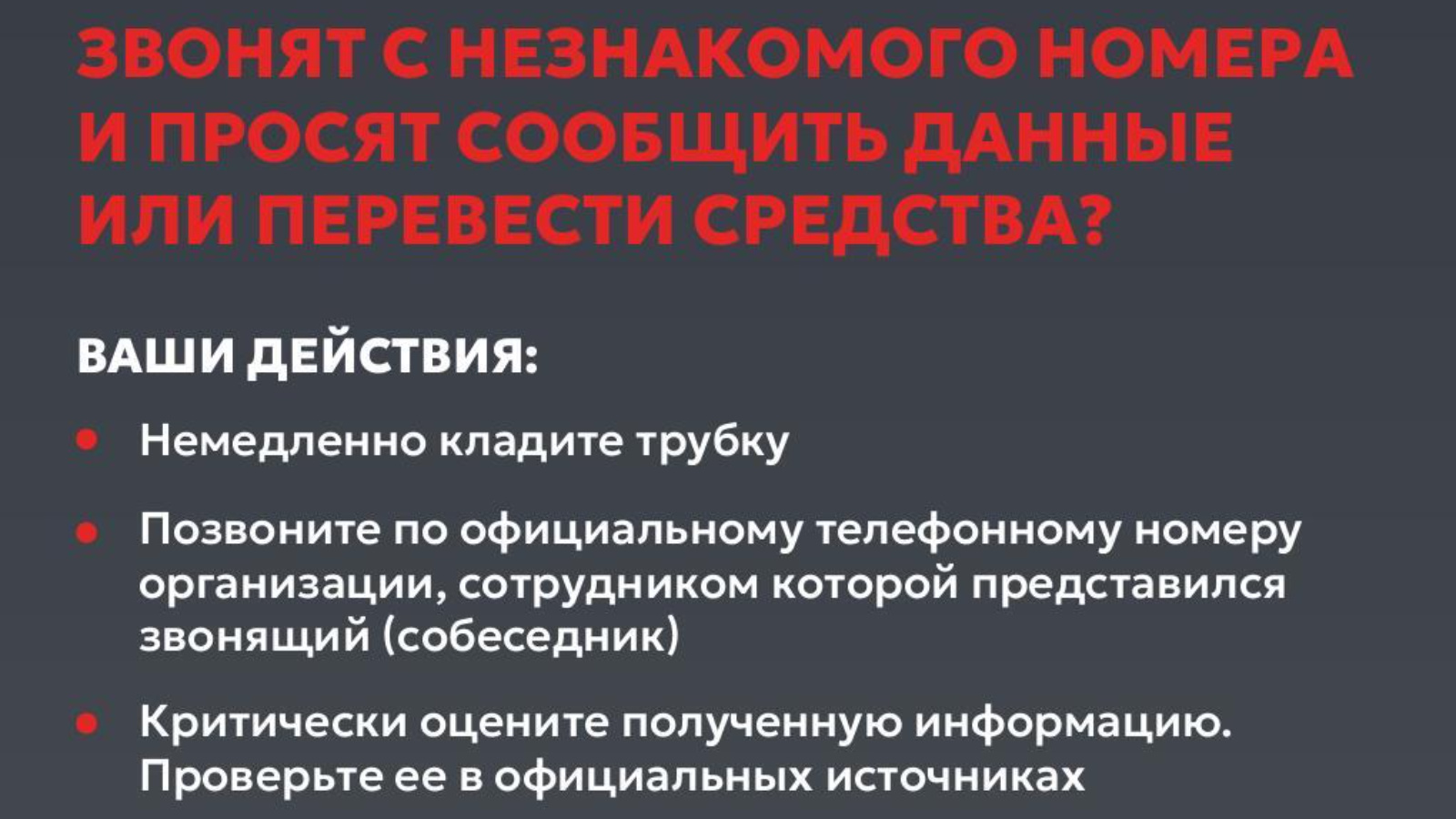 Мәгълүмат-телекоммуникация технологияләрен кулланып кылынган җинаятьләргә һәм хокук бозуларга каршы көрәшнең беренчел бурычы шартларында Россия Федерациясе Прокуратурасы органнары тарафыннан әлеге өлкәдә гражданнарның саклыгын тәэмин итүгә юнәлдерелгән актив эш алып барыла. Җинаятьчел һөҗүмнәр куркынычы арту сәбәпле, Россия Федерациясе Генераль прокуратурасы Россия Банкы белән берлектә акча урлау максатларында ялгыш юлга этәрүче затларның гамәлләре турында халыкка мәгълүмат җиткерү дәрәҗәсен арттыру максатыннан цифрлы плакатлар әзерләде.