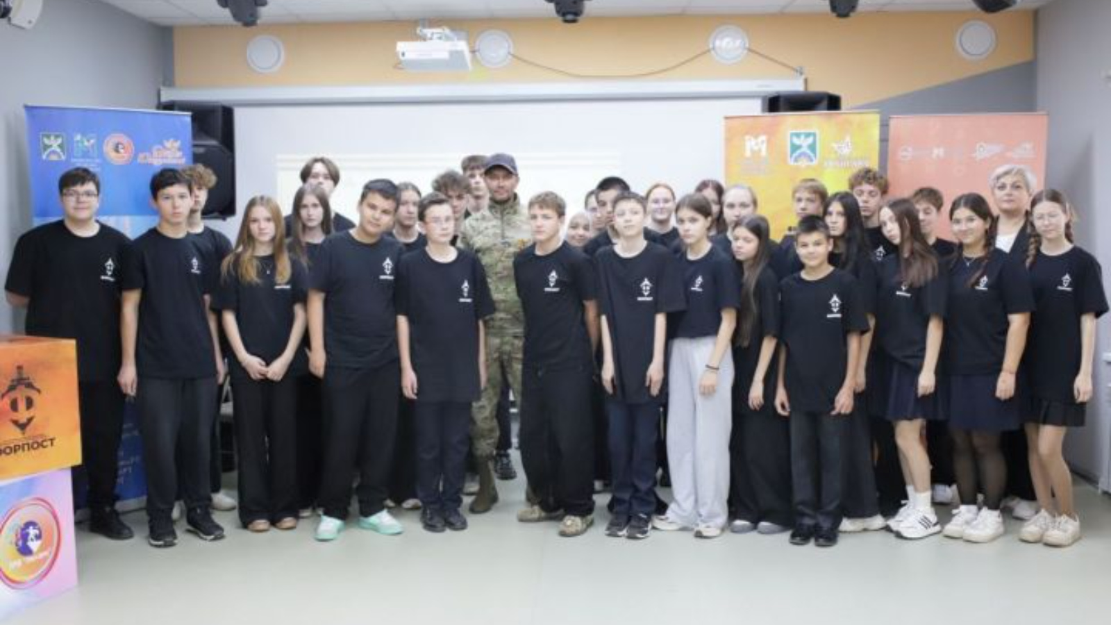 «Киләчәк безнең кулларда» патриотик проекты кысаларында укучылар Чечен Республикасындагы хәрби хәрәкәтләрдә катнашучы һәм СВО көрәшчесе Вадим Грудинин белән очрашты.