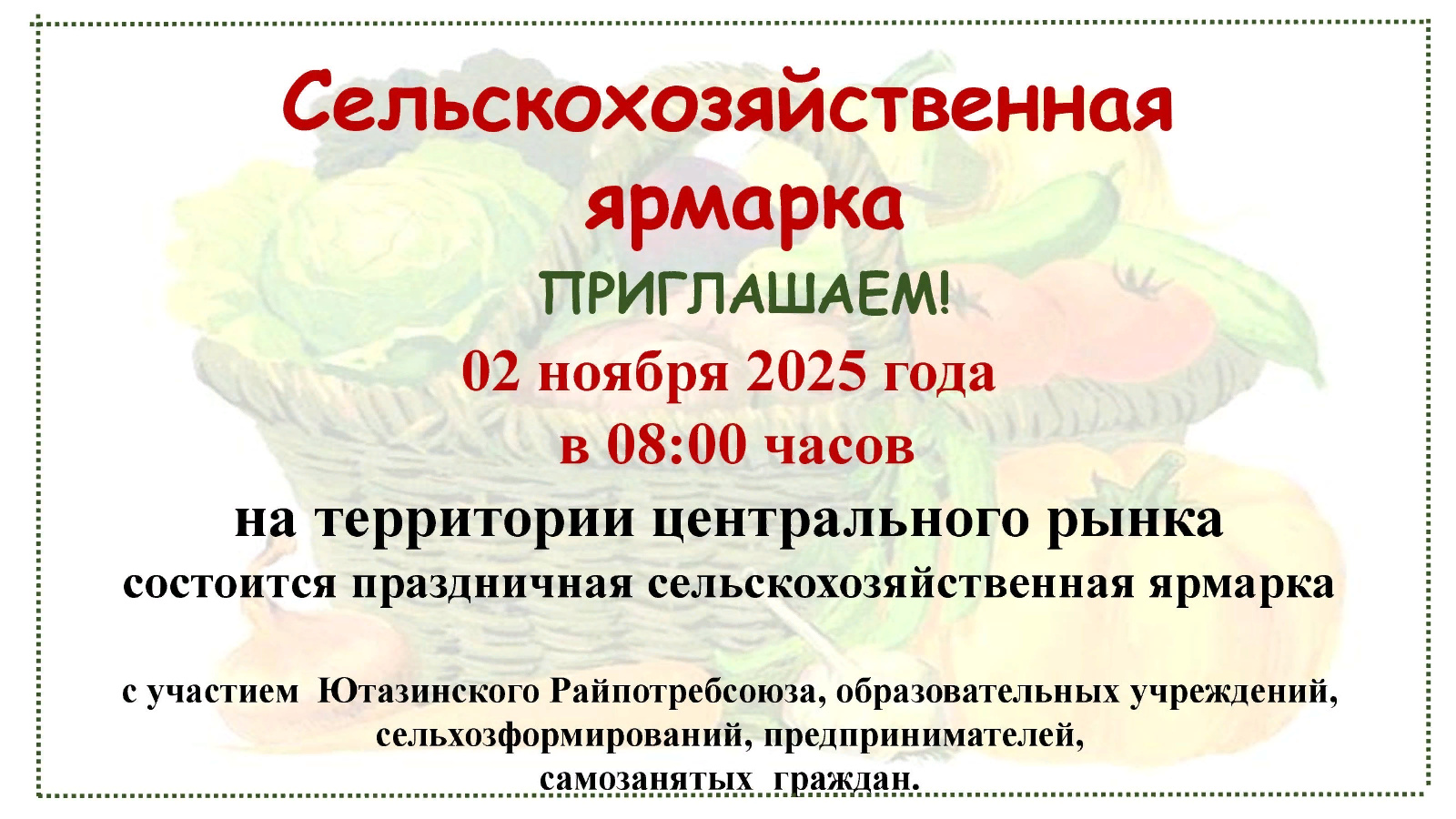 Авыл хуҗалыгы ярминкәсенә чакырабыз!