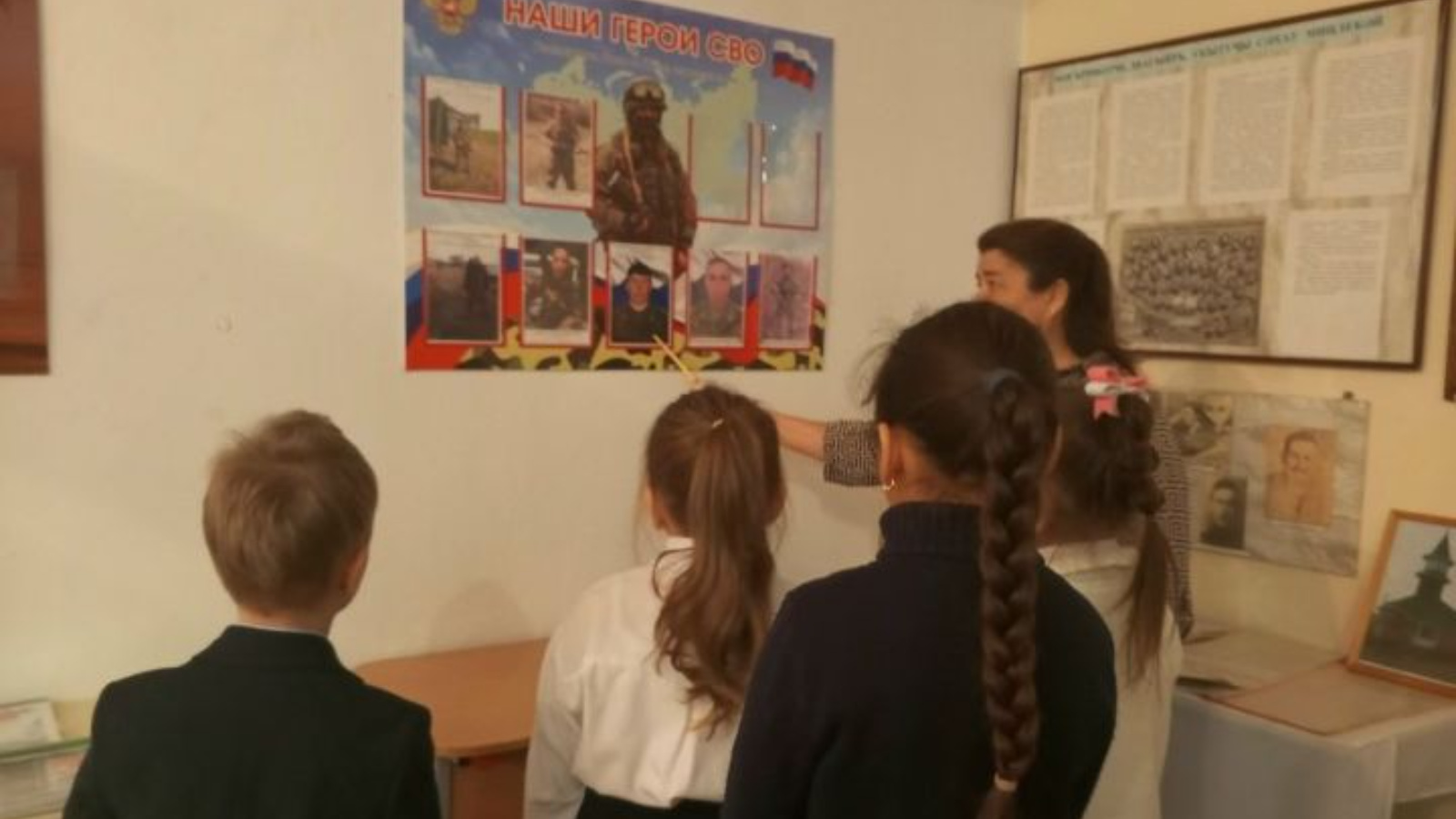 Класс җитәкчесе Инсапова Р.Р. герой якташлары турында әңгәмә үткәрде һәм мәктәп музееның «СВО Геройлары» бүлеге буенча экскурсия оештырды. Бу укучыларга теоретик белем алу гына түгел, ватандашларыбызның батырлык һәм кыюлык үрнәкләрен дә күрергә мөмкинлек бирде.